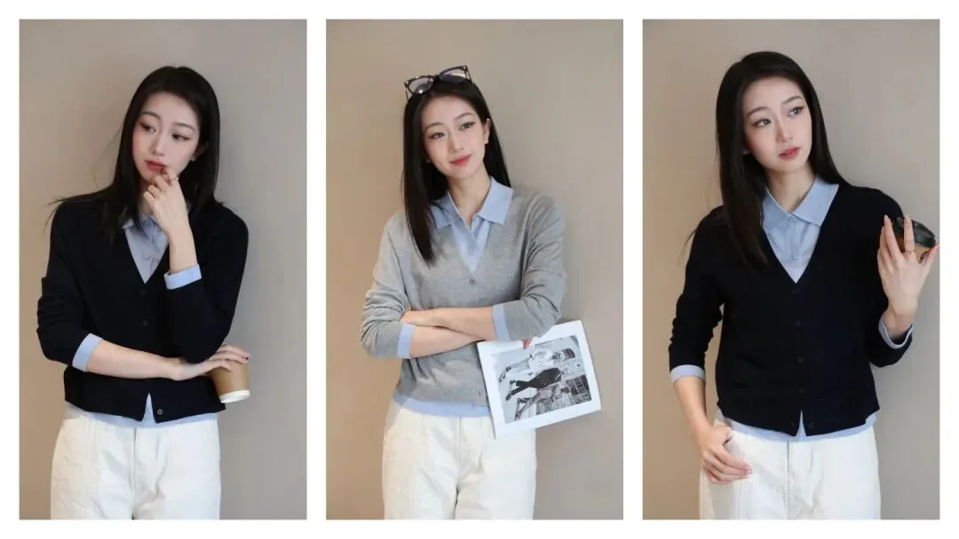 【正在团】叠穿法则~miu系穿搭,桑蚕丝绵羊毛假两件针织衫