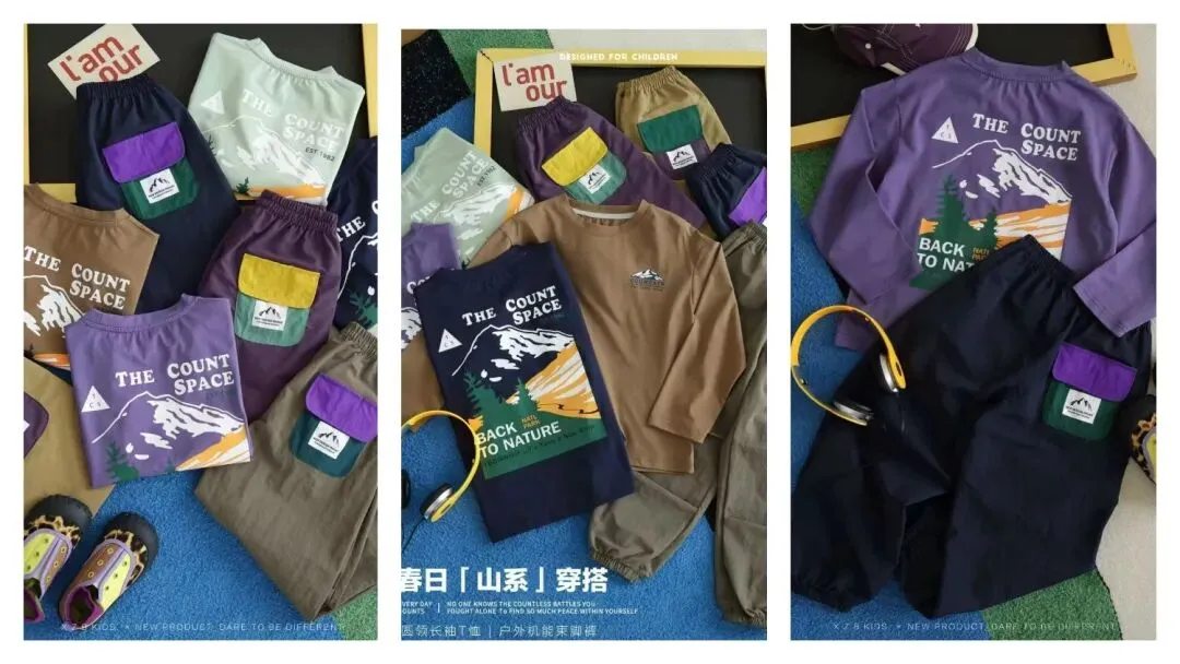 【正在团】小潮娃系列新款春装,儿童山系T恤/速干长裤