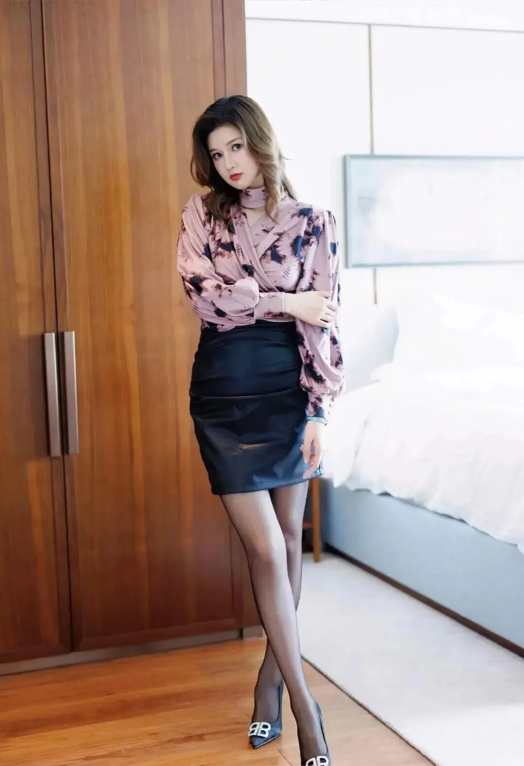 ������������壁纸丨模特皮裙黑丝美腿写真