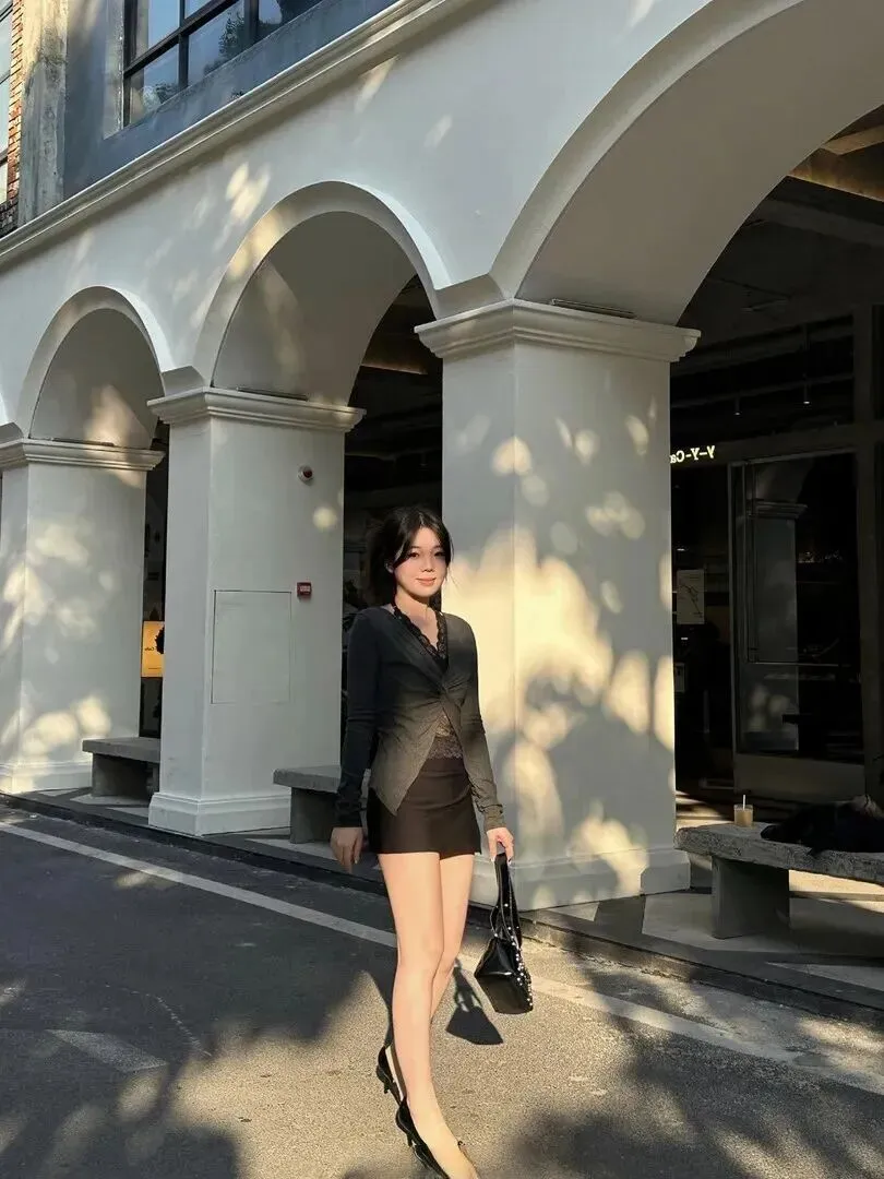 离开咖啡馆之后,身上的衣服仍然可以打。短裙配上高跟鞋,轻步前行自然大方。针织衫可以抵御秋风,不会受寒。走在大街上随便走走,就会引起许多人的注意。