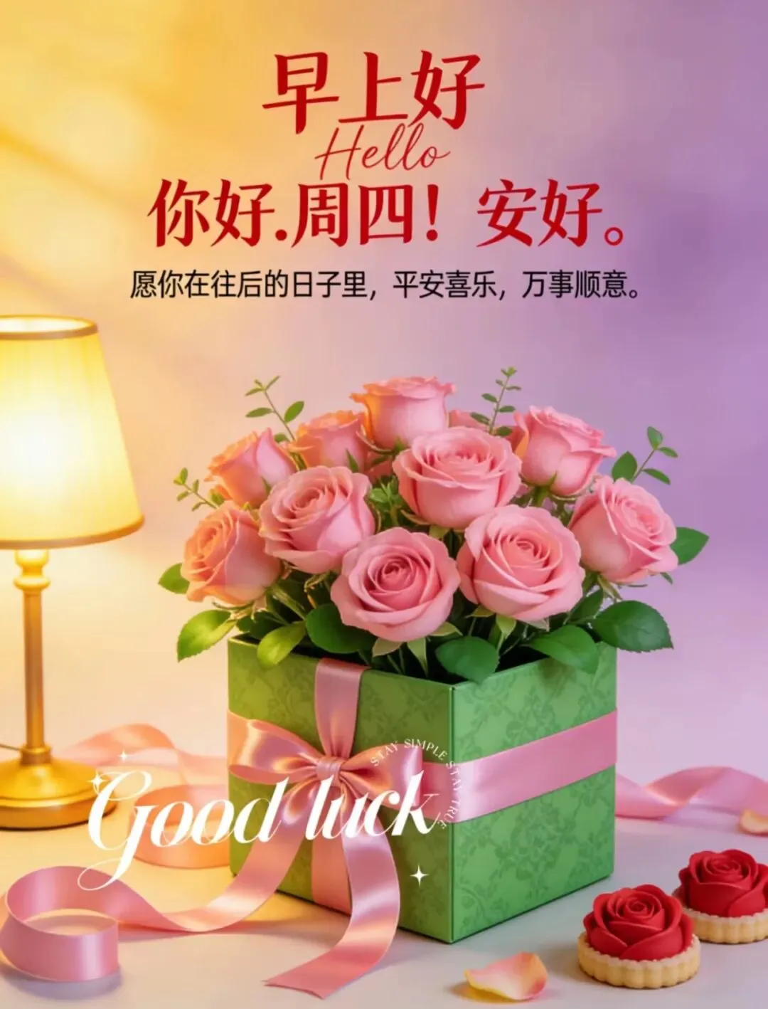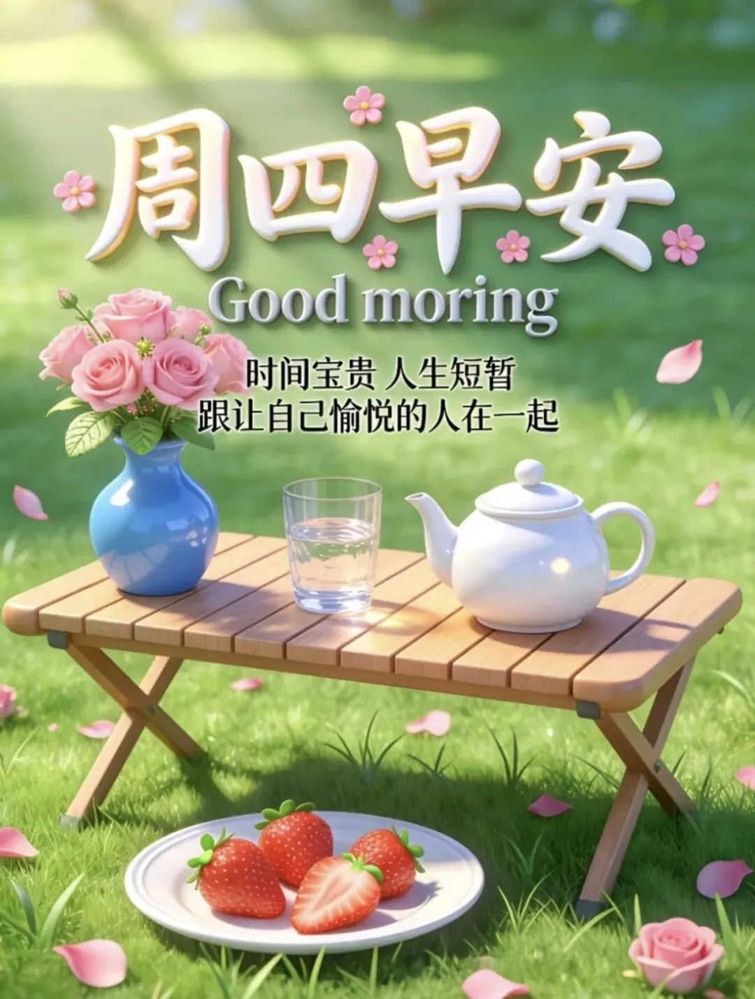 6、🌸阳春三月,花开正好,清晨的阳光治愈一切🌅。愿你心境安然,忙有所值,累有所得,烦恼随风散去,好运步步相随,生活甜甜蜜蜜,周四愉快,早安呀🌿💖