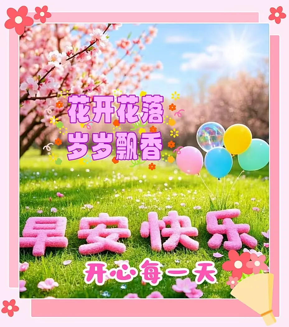 人间最美三月天,鸟语花香柳如烟;青山绿水花一片,阳光美景暖人间;清晨送去我祝福,愿您快乐每一天。早安!🌹🙏❤️🌺🌞🎉