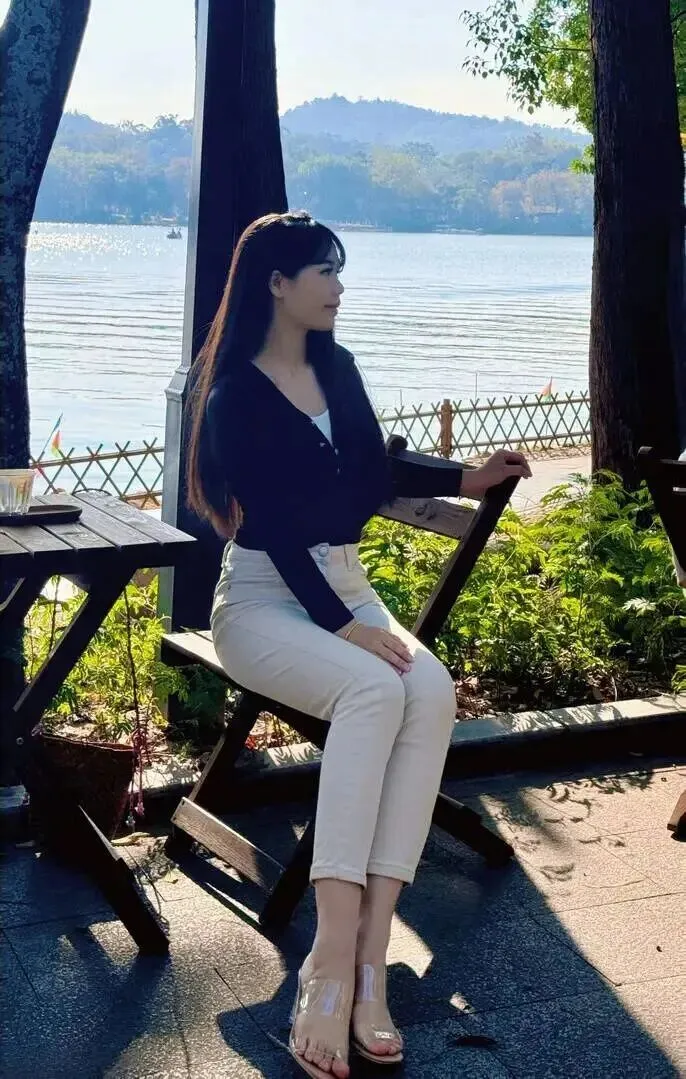 秋天太阳好的时候穿藏青色开衫配米白色牛仔裤,既复古又温柔。脚上穿双透明凉拖,时尚感一下子拉满。坐在户外喝咖啡,仿佛身处于电影当中一样。