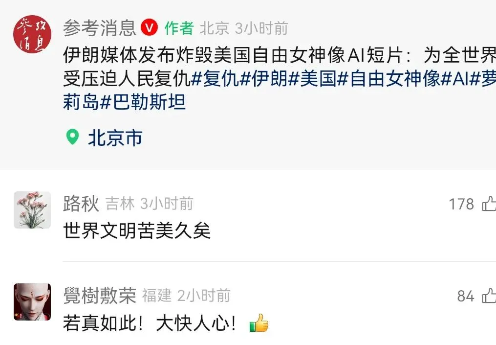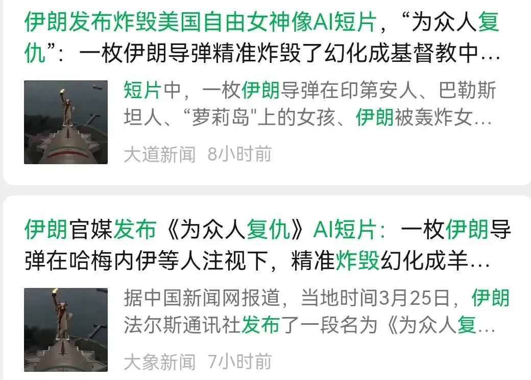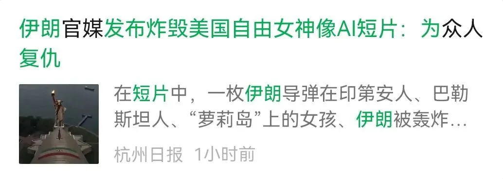 伊朗AI短片炸毁自由女神像,看似是一次政治宣传,实则是对世界本质的一次无情解构。