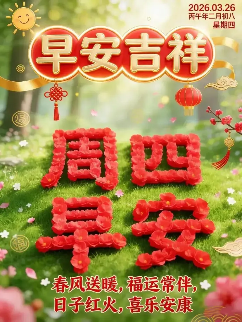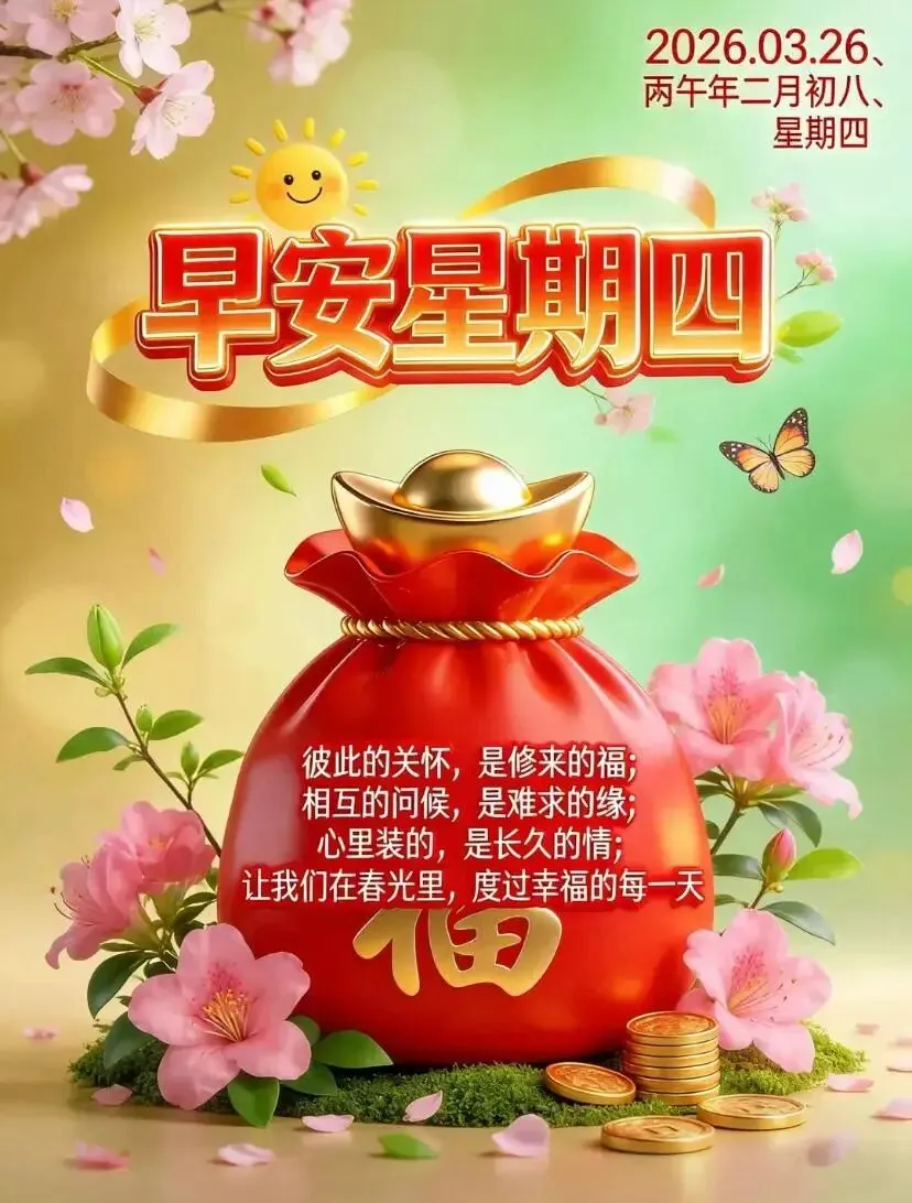 当前位置:首页>美女资讯>2026年03月26日早上好图片最新 春日温馨问候语 周四早安精美图片