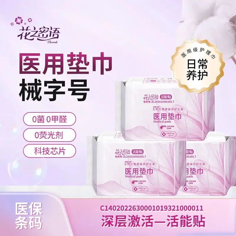 不同于普通护理产品,花之密语活能巾以医用级标准打造,从生产环境到材质选择都严苛把控,零荧光剂、零香精添加,亲肤无刺激,给敏感肌与特殊时期的你满满的安心。它不止是基础防护,更能实现三重深层养护: