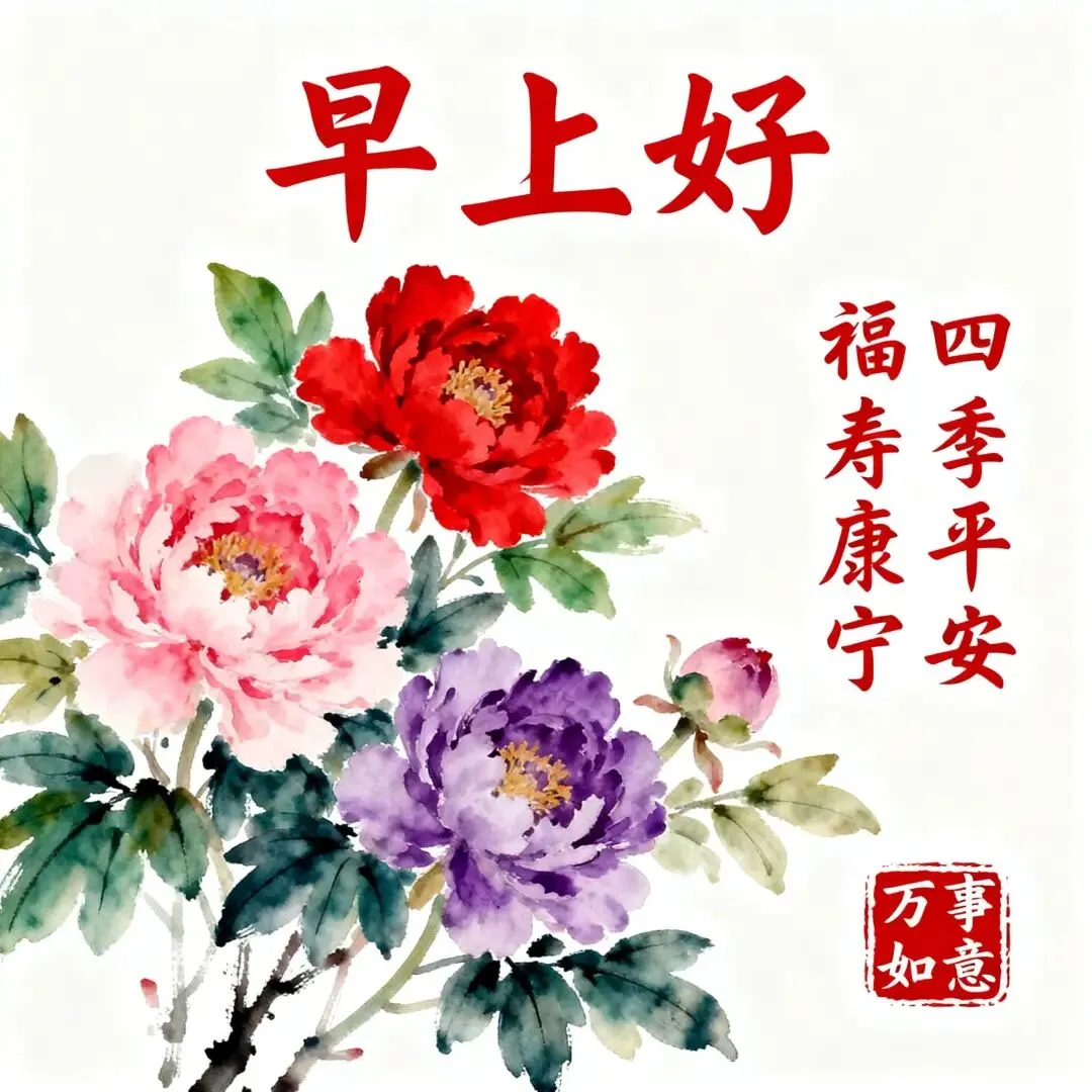彼此不见心中念,送去祝福胜千言,保重身体是心愿,守住健康是关健,祝愿我们都平安,健康快乐每一天。早安!🌹🍎😊🙏🌸🎉