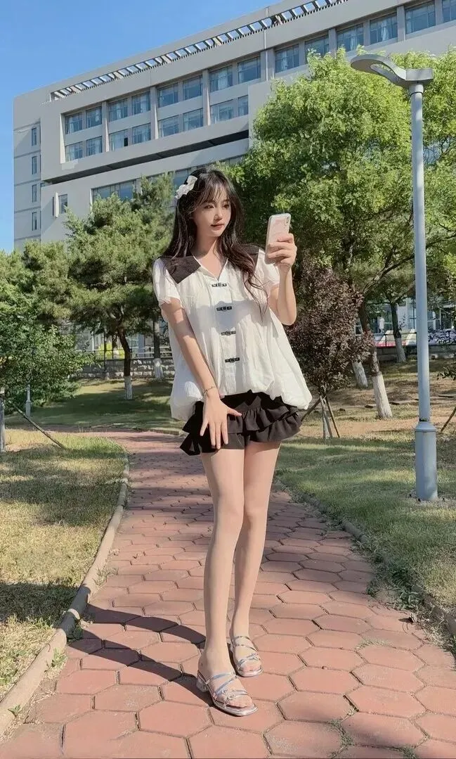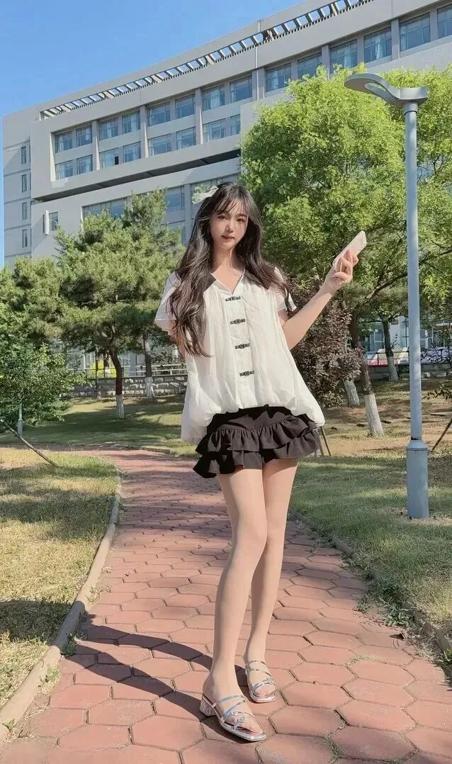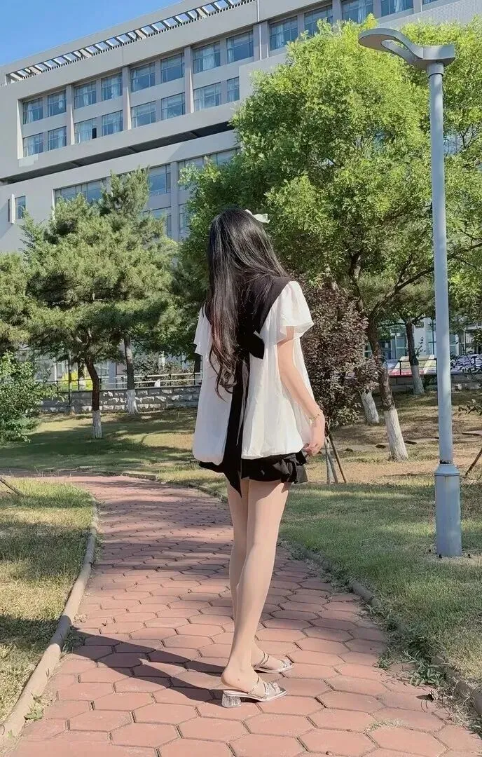 白T黑裙穿出了校园女神的范儿,以下给出拍照时的一些技巧,以达到更好的效果