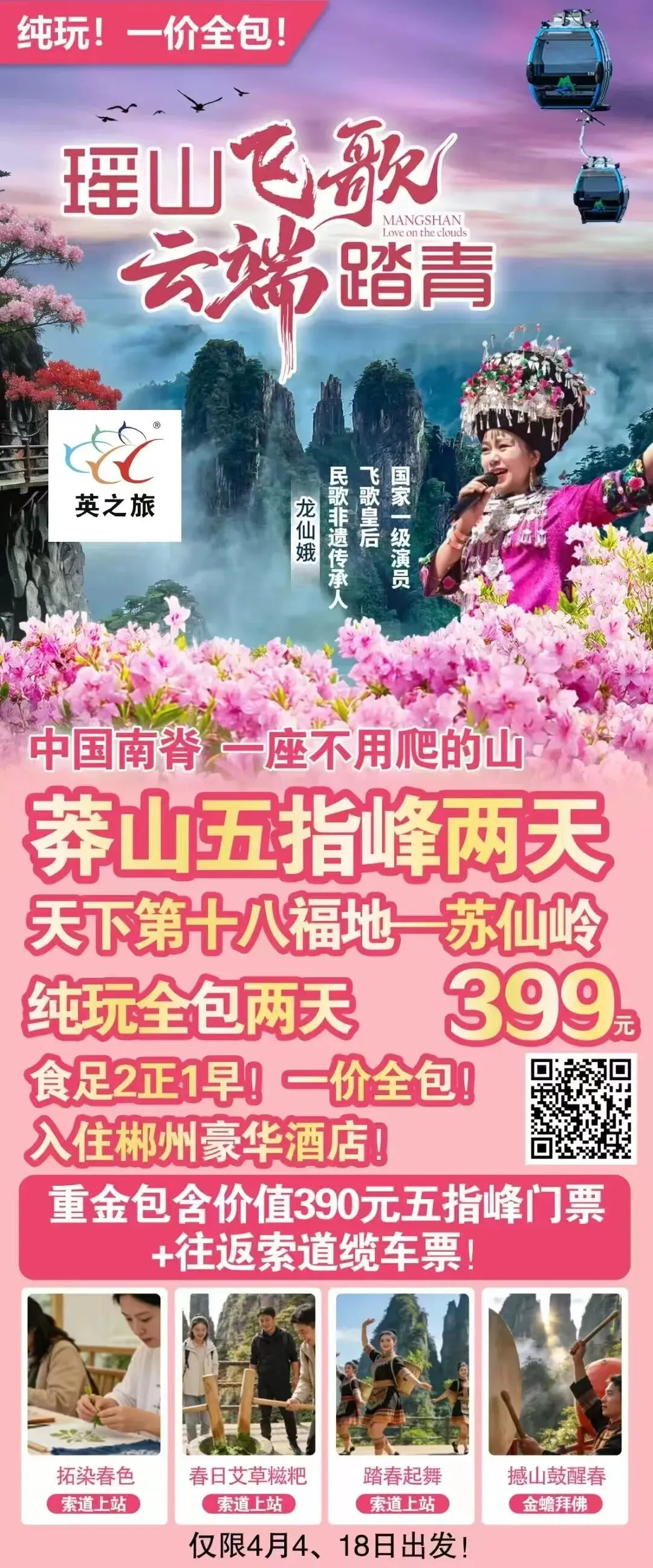 当前位置:首页>美女资讯>【4月4、18日铁定出发,莽山五指峰女神节】十八福地苏仙岭、711时光小镇、含价值390元五指峰门票+往返索道缆车票、纯玩二天游