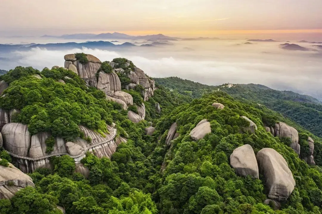 午餐在高速上自理,之后前往世界地质公园、国家5A级景区、国家级风景名胜区、国家自然遗产,中国海边最美的山、“海上仙都”——【太姥山】它雄峙于东海之滨,山海相依、傲岸秀拔,素有“山海大观”、“海上仙都”之美誉,太姥山是一处以花岗岩峰林岩洞为特色,融山、海、川、岛和人文景观于一体的风景旅游胜地,拥有太姥山岳、九鲤溪瀑、福瑶列岛、晴川海滨四大景区和瑞云古刹、翠郊古民居两处独立景点。太姥山面临东海,地处亚热带,属亚热带湿润季风气候,年平均气温13.6℃,夏无酷暑,冬无严寒,一年四季皆宜游览、休养,是理想的旅游、度假、避暑胜地,观情意绵绵的夫妻峰、博物馆、木栈道、迎仙台、金猫扑鼠、蓝溪涧、一线天、金龟爬壁、一片瓦寺、通天洞、滴水洞、全国唯一的观海悬空栈道。(游览约3小时)