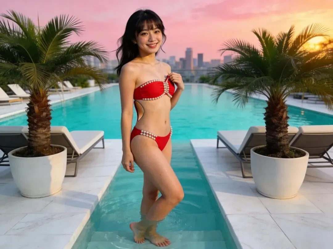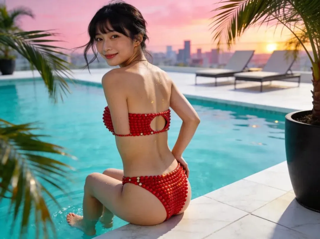 对于娇小型、圆润饱满的灵动少女来说,这件红色泳衣堪称量身定制。明艳的正红色在视觉上有膨胀感,能恰到好处地填补娇小型身材的单薄感,让身形看起来更匀称饱满。四肢匀称的线条在红色面料的映衬下,显得愈发纤细灵动,自带的少女感与泳衣的时尚风格碰撞出独特的甜酷气质。背部的交叉带设计巧妙露出圆润的肩颈线条,腰腹的微收设计则柔和地勾勒出腰臀的自然曲线,既不会过度暴露,又能将娇俏身材的优势发挥到极致,每一个角度都洋溢着元气满满的少女气息。