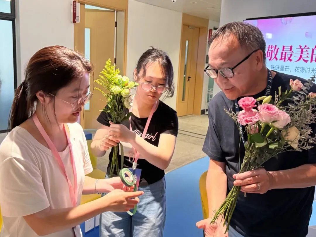 活动尾声,大家手持亲手制作的花艺作品合影留念,将春日美好与节日喜悦定格成温暖回忆。本次手作体验活动,既为师生送上节日祝福与关怀,也让大家在创作中感受美、创造美,共度温馨时光。