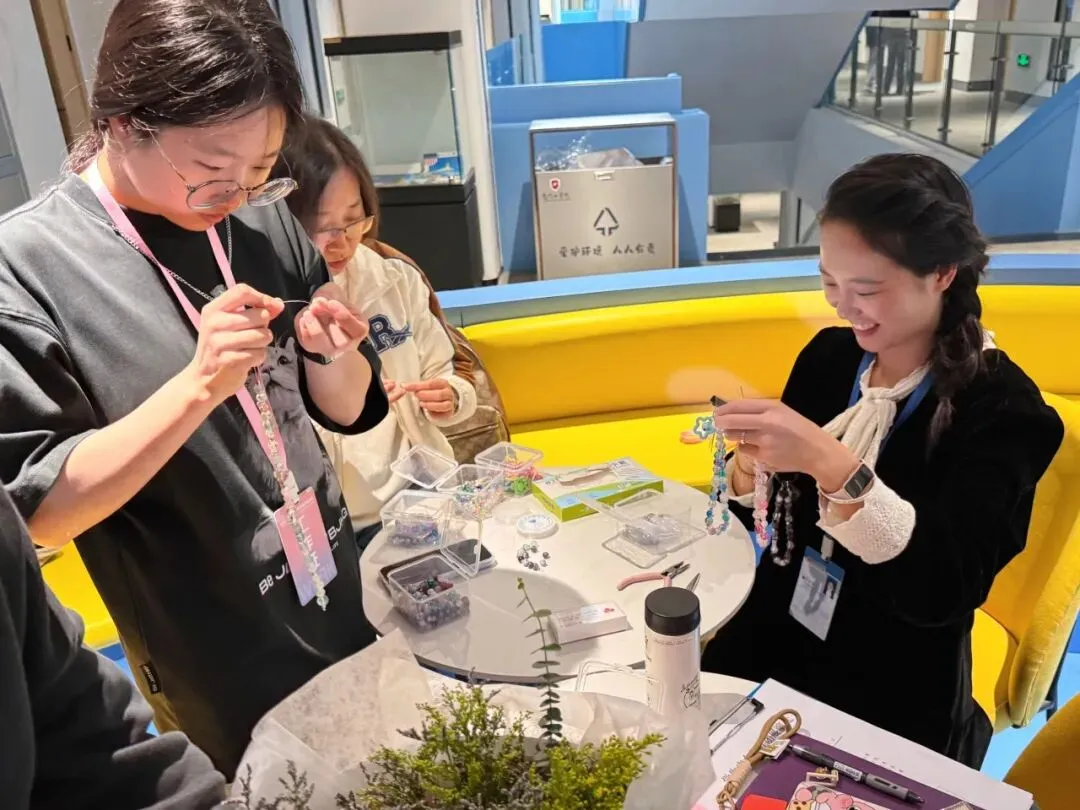 另一侧的手机链DIY区同样充满巧思,大家沉浸其中,用各色珠串与挂饰编织出独特风格。一条别具匠心的DIY手机链在指尖逐渐成形,点滴创意被串联成链,让这份手作的温暖常伴日常。