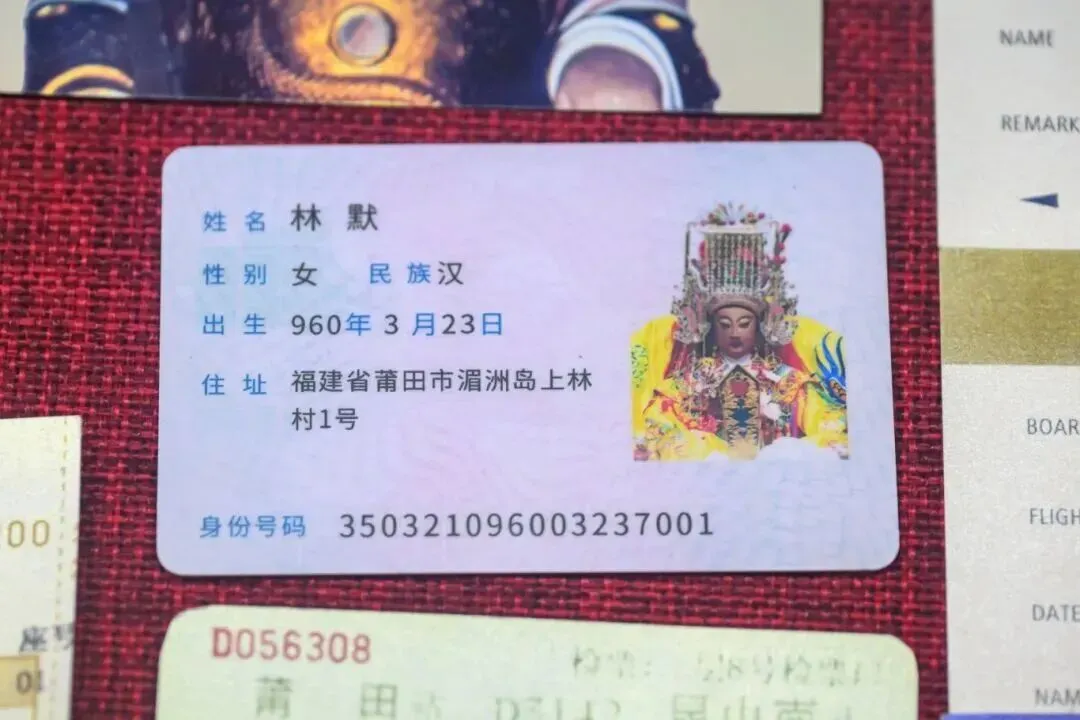 妈祖搭乘动车及所使用的的身份证、车船票等证件