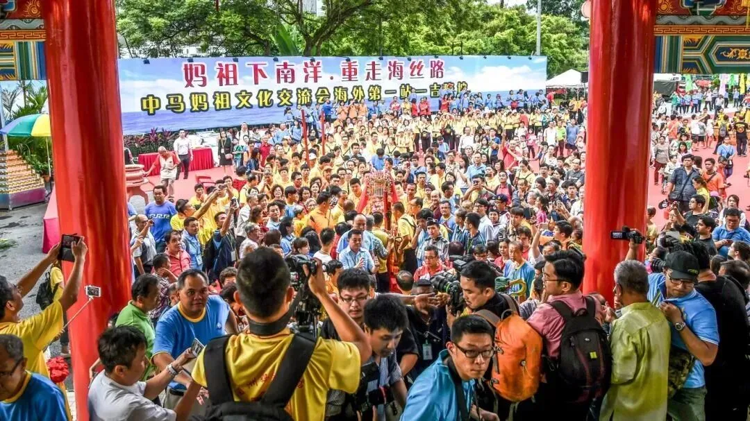 “妈祖下南洋,重走海丝路”。2017年起,妈祖开始了一场场令人瞩目的“跨国巡安”。妈祖“拿着”虚拟身份证,搭乘飞机、邮轮、动车,把平安吉祥送到马来西亚、新加坡、菲律宾、泰国等国家。所到之处,万人空巷,掀起“妈祖热”。