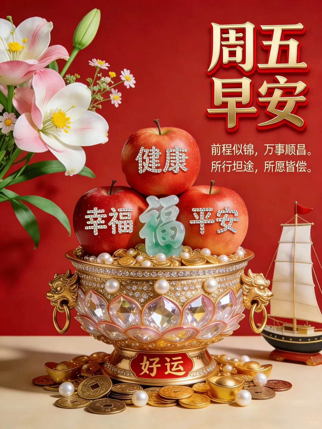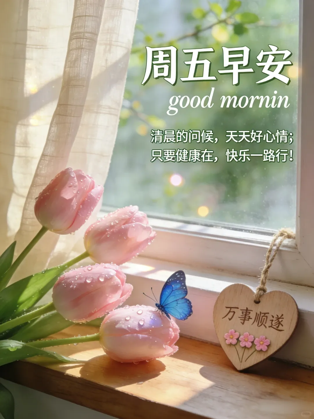 11.周五早安,朋友们!春光,我们共赏;平安,我们共守;快乐,我们共享;美好,我们共伴。愿我们岁岁安康,笑容常在每一天。🌸🎉💪😄文字,是心意的传递;问候,是情谊的延续;牵挂,是真心的惦记;祝福,是岁月的珍惜!新的一天,顺遂安康!