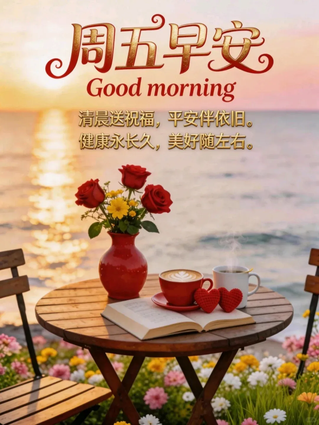 2. ☕周五早安!晨光温柔,微风正好,一周的辛苦即将告一段落。不必赶时间,不必太较真,按自己的节奏把事情做好,对自己多一点温柔。愿你工作顺心,生活舒心,身体轻松,心情舒畅,好事常来,好运常在,每一天都安稳又欢喜。
