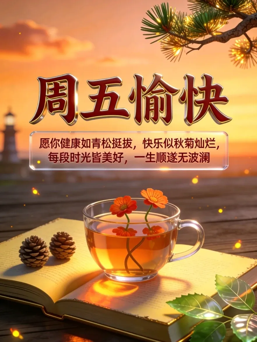 4. ✨周五早安!新的一天,新的小期待。忙完今天,就能好好放松一下啦。愿你保持从容,保持微笑,做事不慌不忙,待人真诚温暖。愿清晨的阳光给你力量,微风带走忧愁,事事都顺心,件件都如意,福气常伴,喜乐常在。