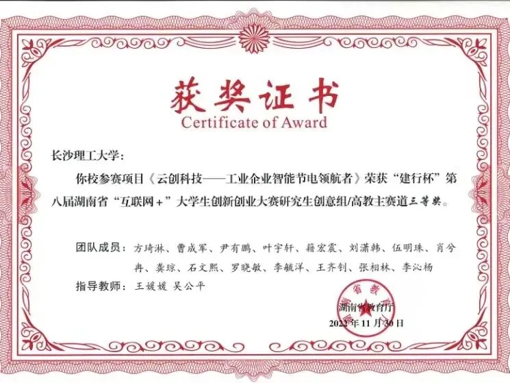 “互联网+”大学生创新创业大赛省级三等奖