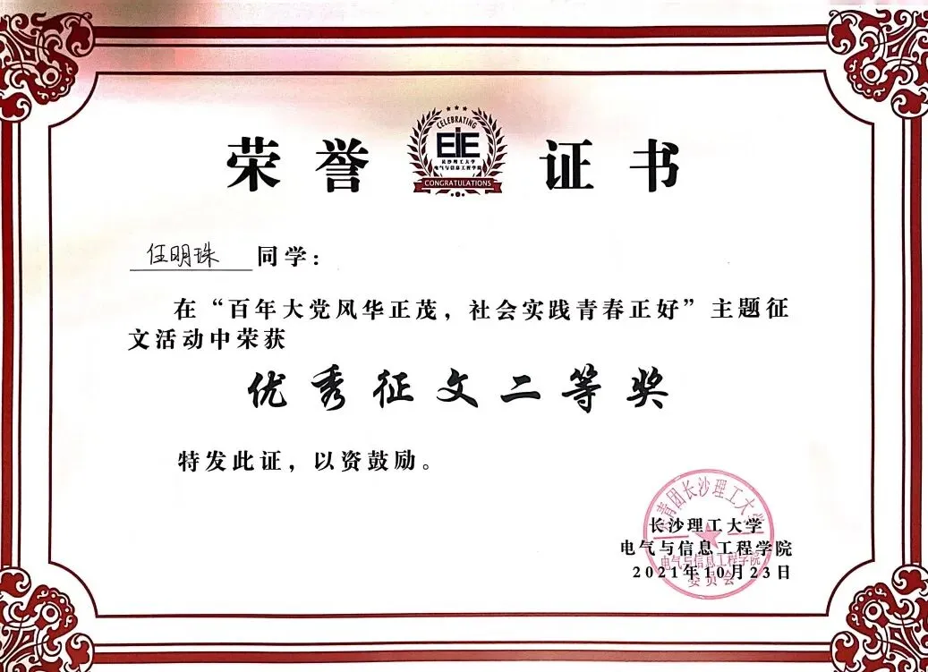 电气与信息工程学院主题优秀征文二等奖