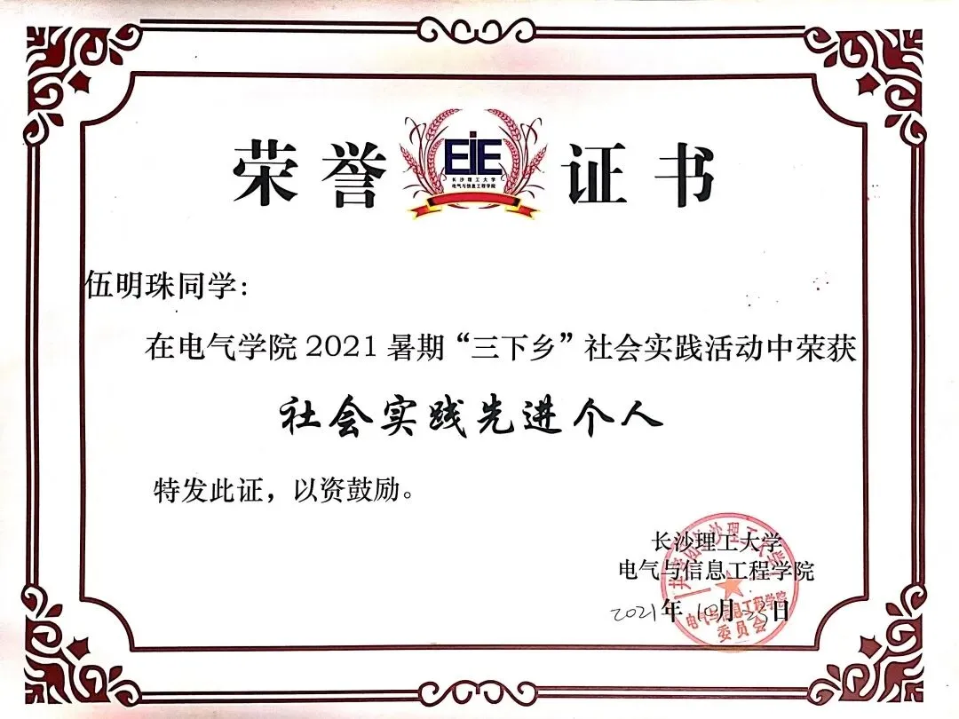 电气学院2021暑期“三下乡”社会实践先进个人