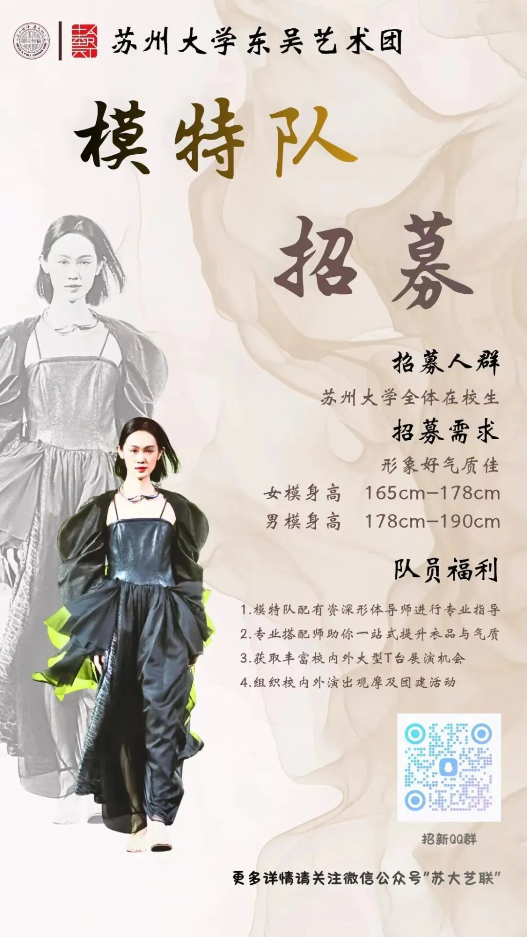 招新|苏州大学东吴艺术团模特队正式成立!