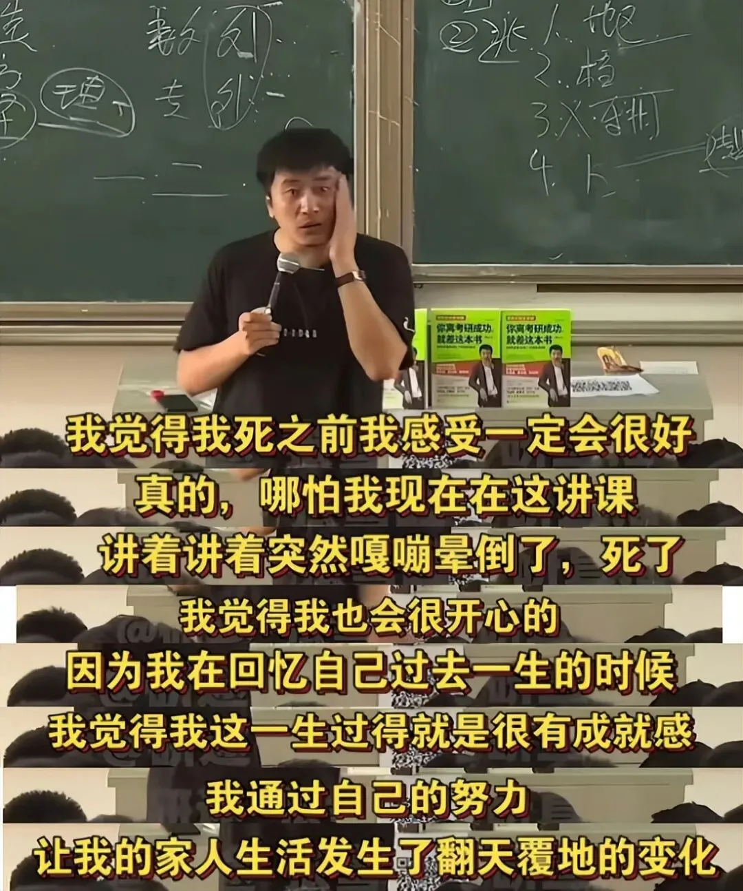 在之前的上课中,张雪峰也曾多次谈及过生死话题,犹记得他曾说过:“我觉得我死之前,我的感受一定会很好,哪怕我现在在这讲课,突然晕倒了,我觉得我也会很开心,因为我在回忆自己过去一生的时候,我觉得我这一生过得很有成就感,我通过自己的努力,让我的家人生活发生了翻天覆地的变化。”