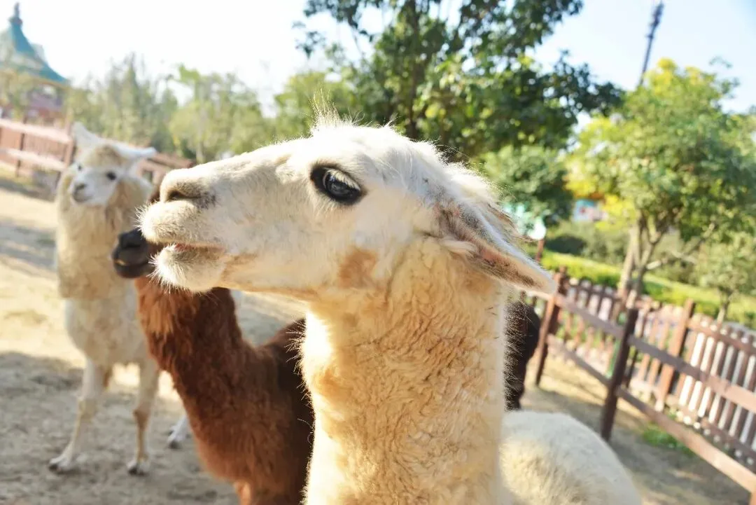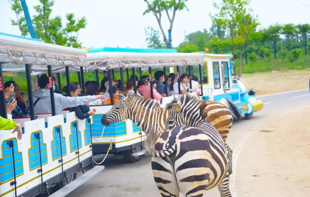 集中排队乘坐观光小火车前往猛兽区观看狮子、 老虎、金钱豹、黑熊等动物。近距离接触羊驼,在猛兽区不得下车遵从工作人员的安排。