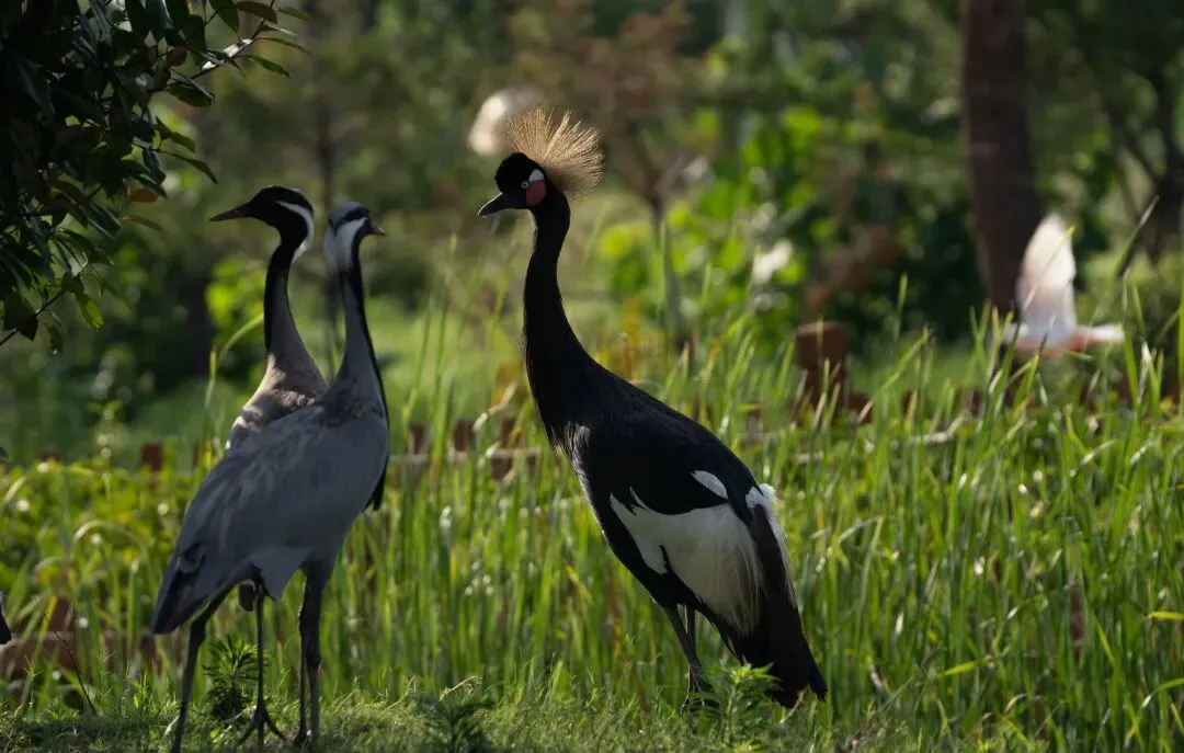 由老师导游带队统一活动,观看萌宠小动物,有火烈鸟、丹顶鹤、长颈鹿、羊驼、鸵鸟、豪猪、鹦鹉等温顺小动物。