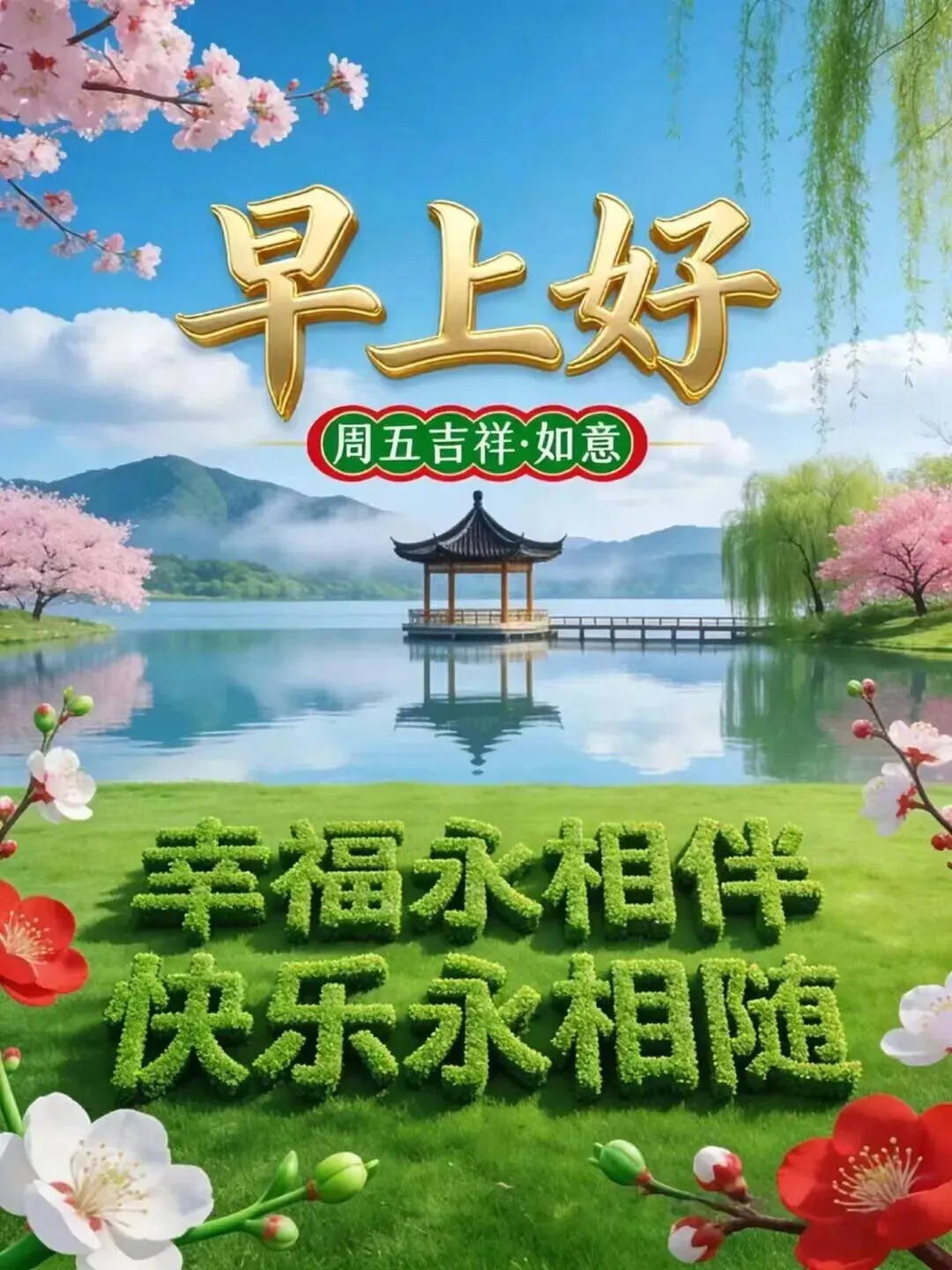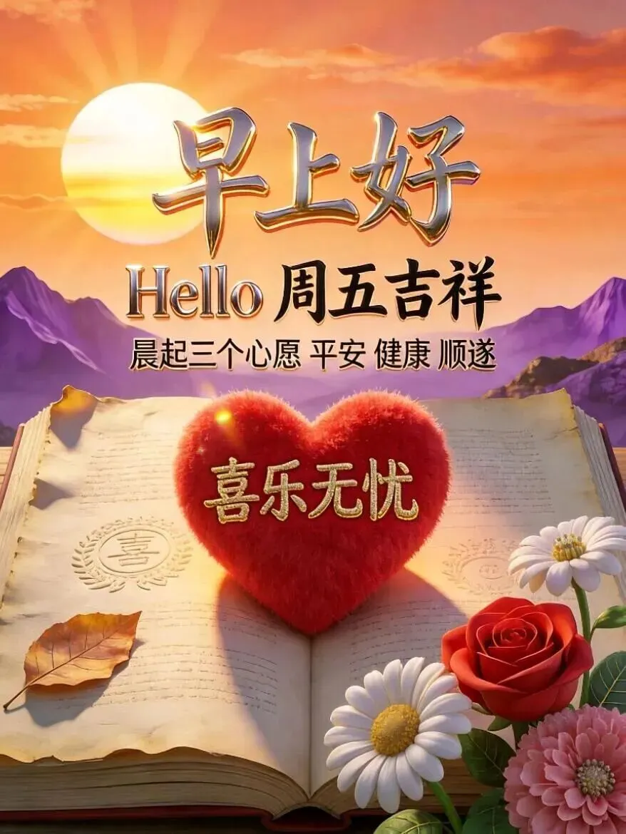 人生路上有五福:身体健康第一福,心态乐观第二福,有人惦记福中福,知足常乐是幸福,相互问候添百福,周五早安愉快!