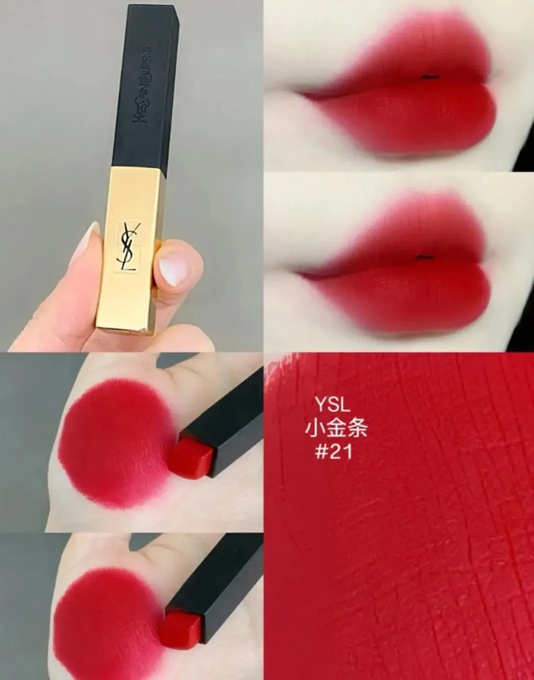 如果说女人一生中必备一支正红色口红,那么我肯定第一时间想推荐的是这支,YSL21超级复古的正红色,首先在颜值上面是很抗打的,有点小金条的感觉,在包装上真的很有质感,不过作为正红色,其实这款不算太日常,所以一般都是建议化妆出来厚涂的效果才更加的好看。