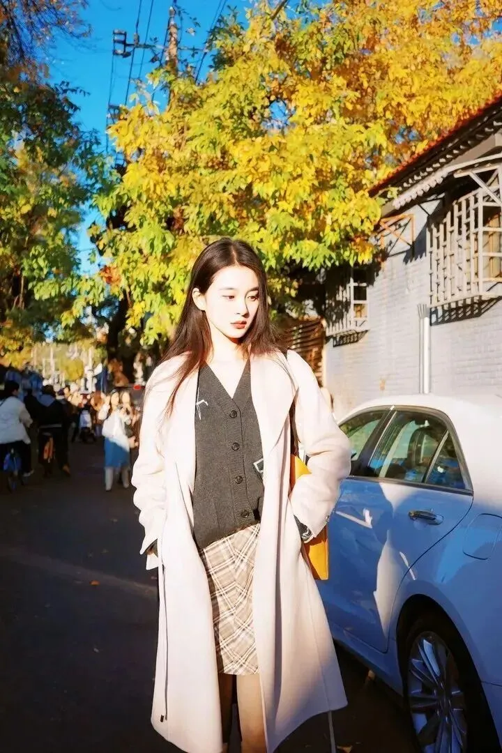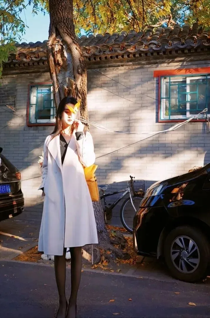 当前位置:首页>美女资讯>胡同雪景中的时尚女神:米白大衣与黄包的绝美邂逅