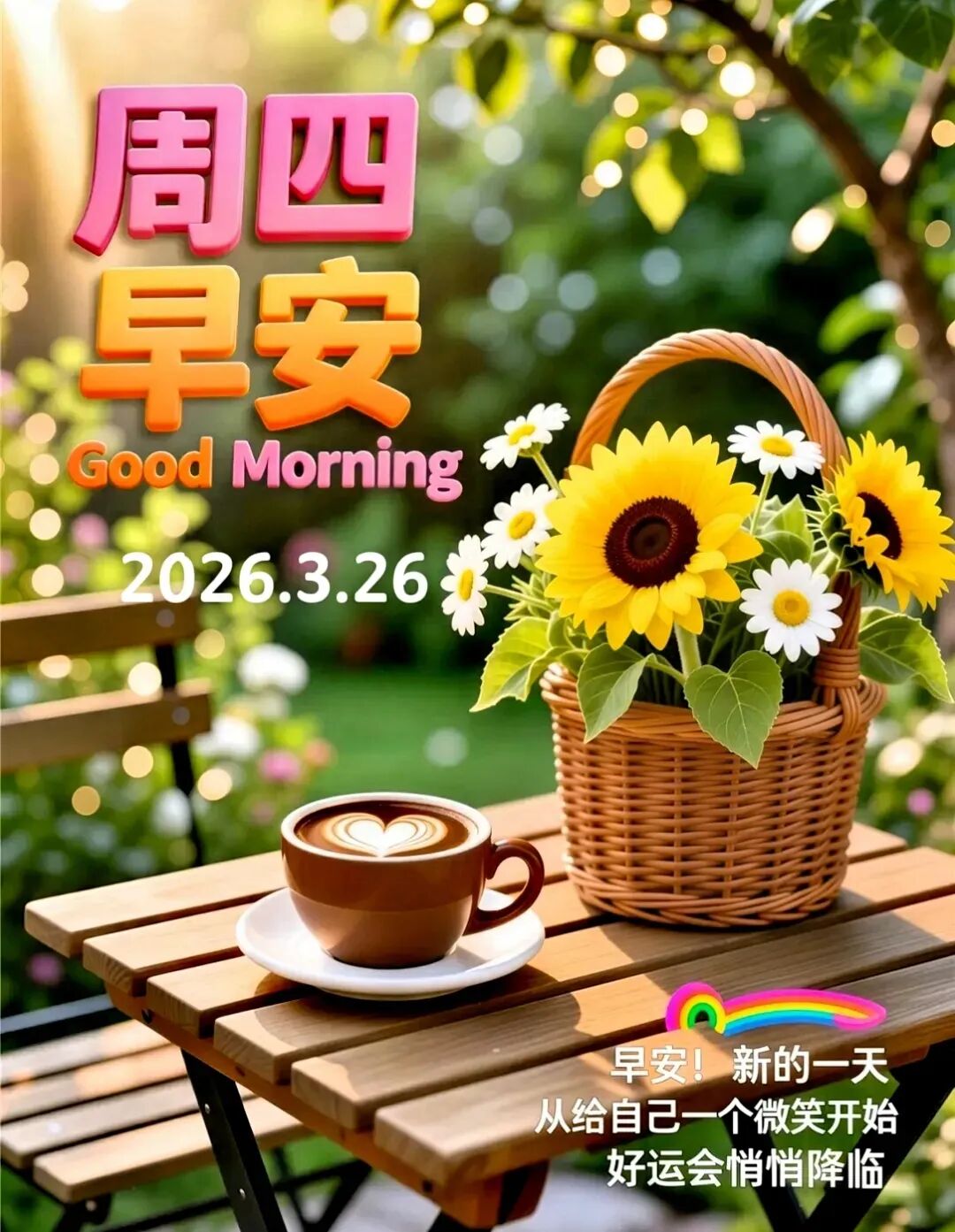 3月26日周四早安祝福美图+今日文案:愿你笑容像晨光,照亮朝夕,每一步都满是希望与幸福