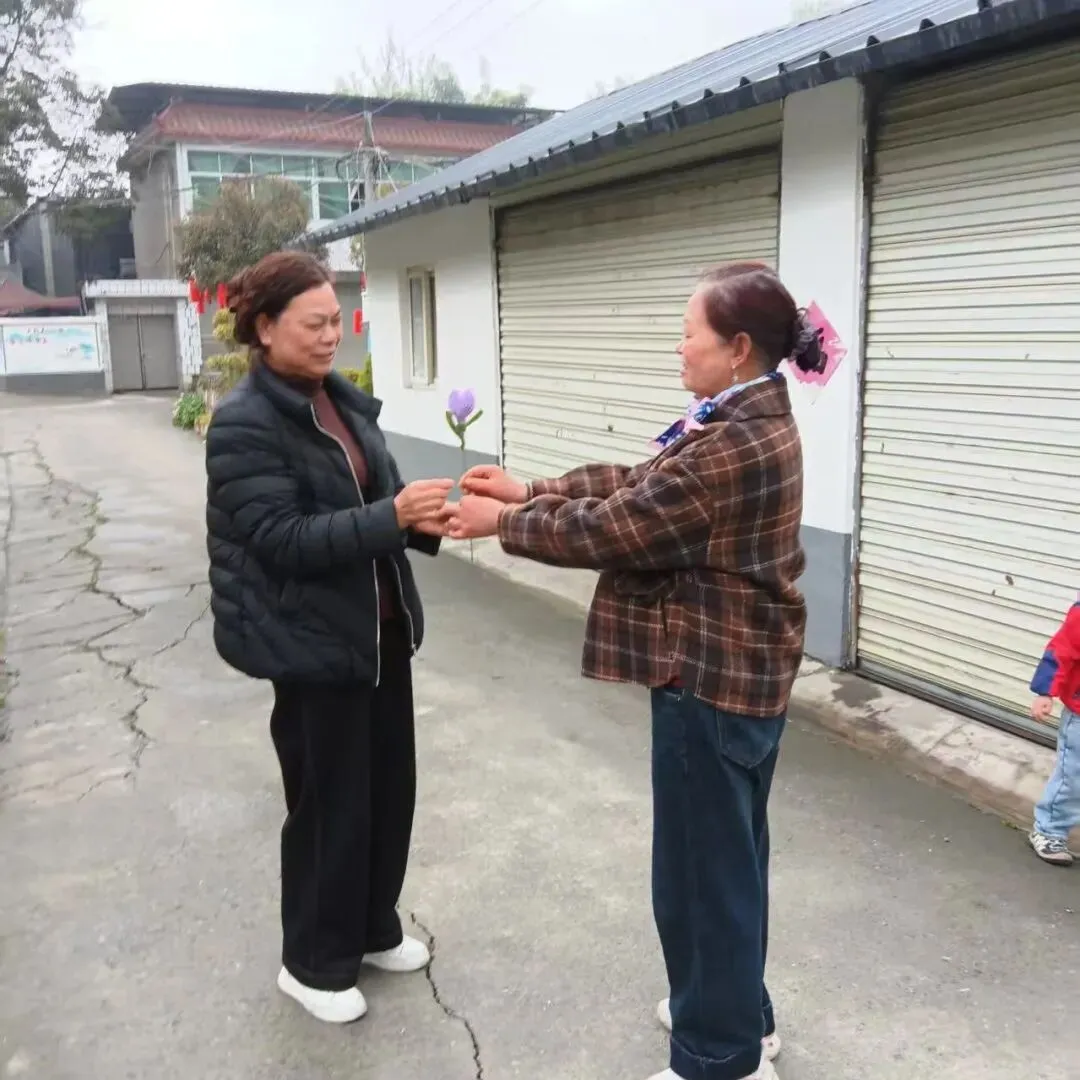 活动落幕,温暖不止。村工作人员与新就业群体志愿者,带着精心制作的花束,上门慰问辖区行动不便的特殊妇女。