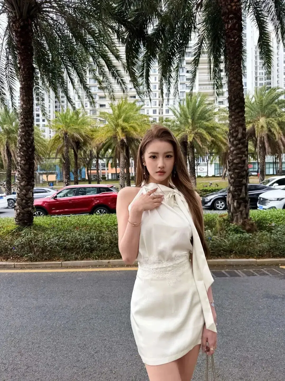 那日在椰林婆娑的街头,远远就看见了一个女孩。她到来好似一股微风,缓缓拂去酷夏里的热浪。每一套穿都能体现出现实生活的舒服、自在的品质,使人心有余悸地多看上几眼。原来穿搭可以如此有感染力,不用过于夸张的造型,只要在缎面、蕾丝以及一些小饰品上做些文章,温柔的气息就立刻扑面而来。