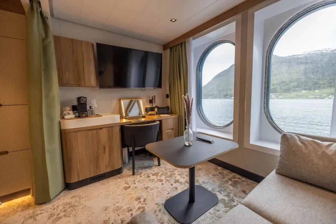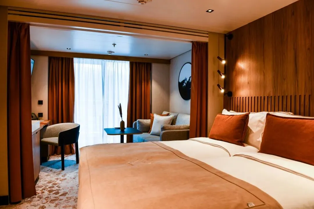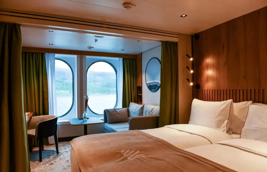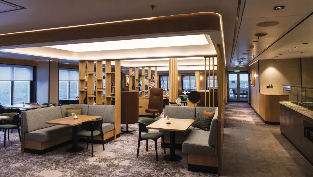 全船96间客房,遵循斯堪的纳维亚美学,柔和色调搭配自然材质。设豪华套房、天鹅套房、迷你套房、露台客房、海景客房。标配火焰壁炉、独立卫浴、illy咖啡机、Lajatica定制洗护、尼康望远镜、24小时客房服务,静谧舒适,奢享海上私密空间。