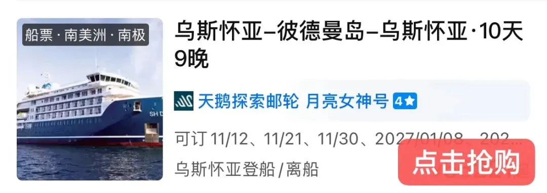 这一班期11月直击南极初季,正值企鹅孵化季,可邂逅毛茸茸幼崽与 “企鹅高速公路” 奇观,动物活跃度较旺季高 30%,搭配专业探险讲座,是不可多得的小众私享极地线路。