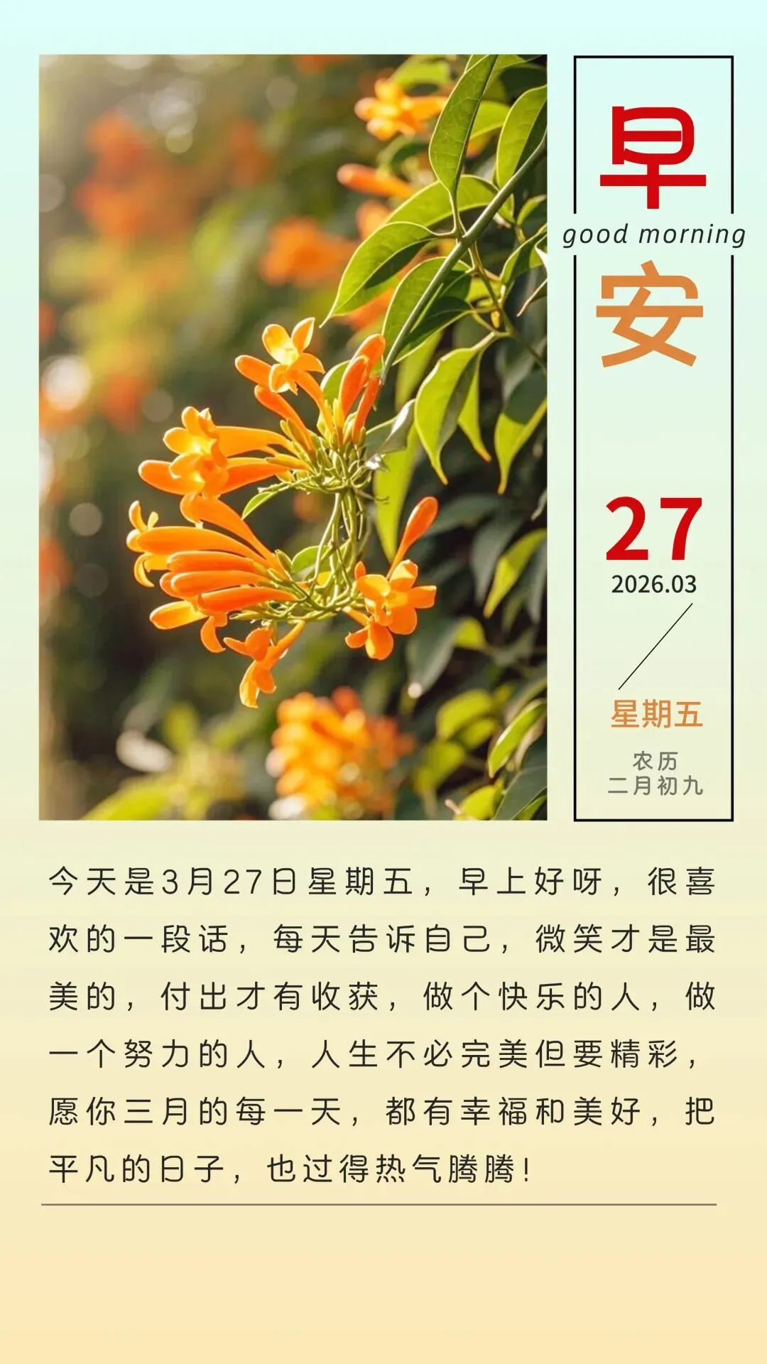 当前位置:首页>美女资讯>3月27日 早安图片 周五早安祝福图片大全最新
