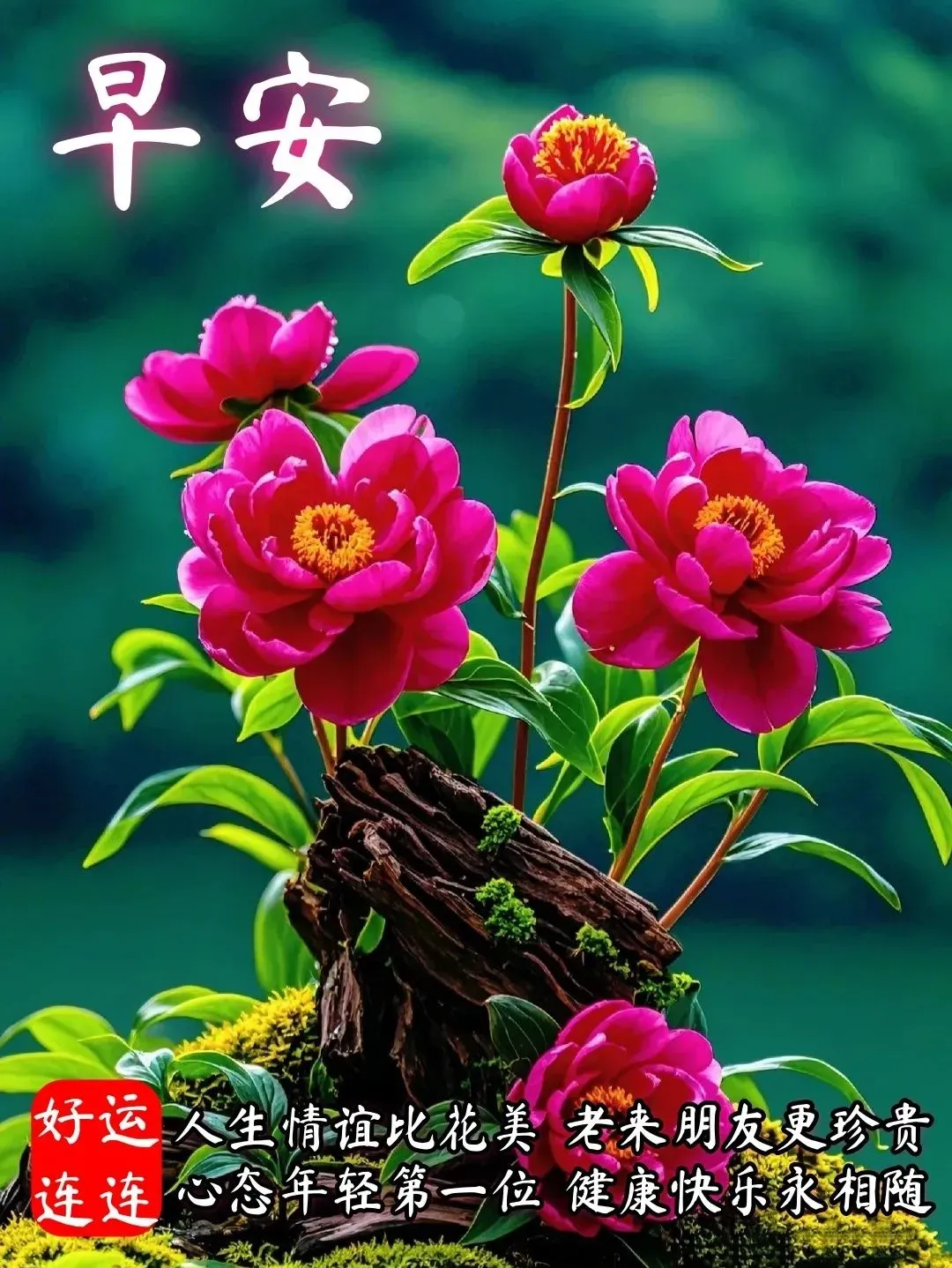 晨露晶莹润心田,开心如花绽笑颜。天天快乐身康健,心宽福至乐无边。珍惜友情情更浓,相互牵挂暖心间。新日开启新旅程,愿你幸福永相伴,早安,快乐启航!