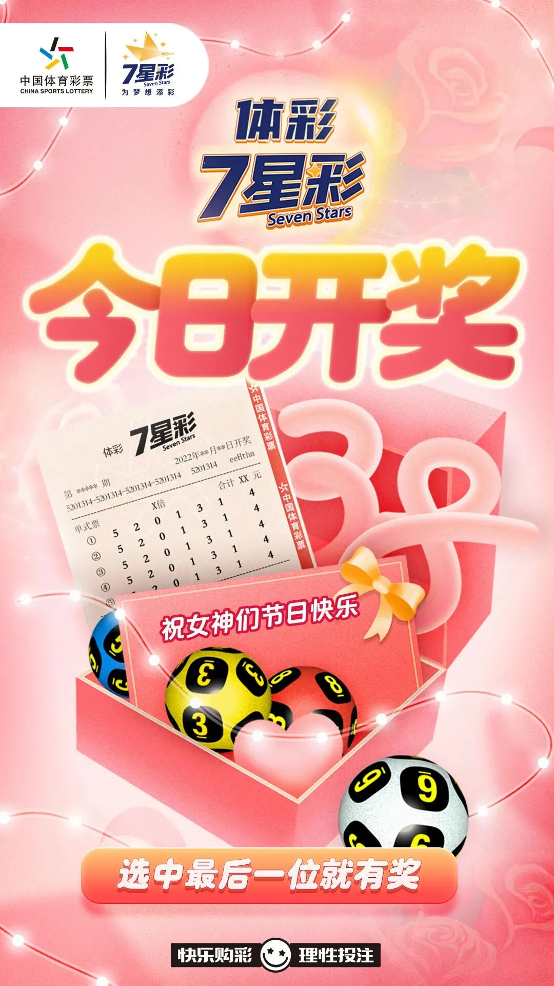 当前位置:首页>美女资讯>【7星彩】女神节,送她一张7星彩!选中最后一位就有奖!