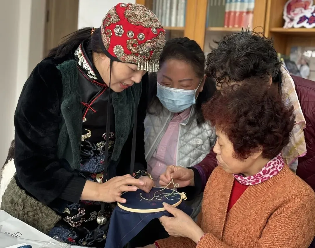 非物质文化遗产是中华优秀传统文化的重要组成部分,是中华文明绵延传承的生动见证,是连结民族情感、维系国家统一的重要基础。2023年以来,庙行镇旨在大力保护好、传承好、利用好非物质文化遗产,延续历史文脉、坚定文化自信、推动文明交流互鉴在推广。3月8日上午,在“三八”国际妇女节之际,庙行镇社区文化活动中心特邀魔品绣创始人、企业家代表杨天军老师举办彝族非遗刺绣推广活动,正式开办庙行魅力刺绣达人班。