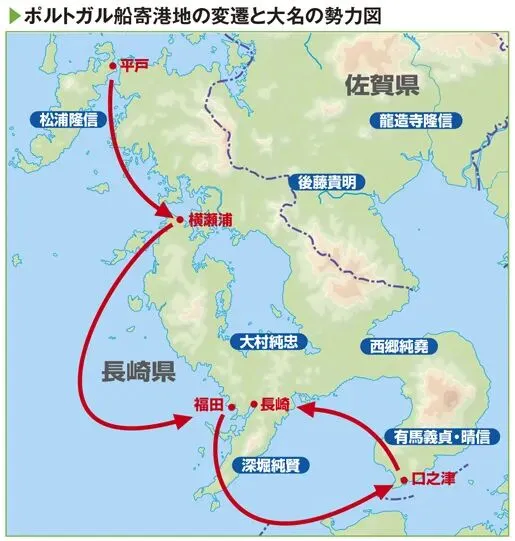 葡萄牙商船在九州的出入港口与地方大名势力图 图源:网络