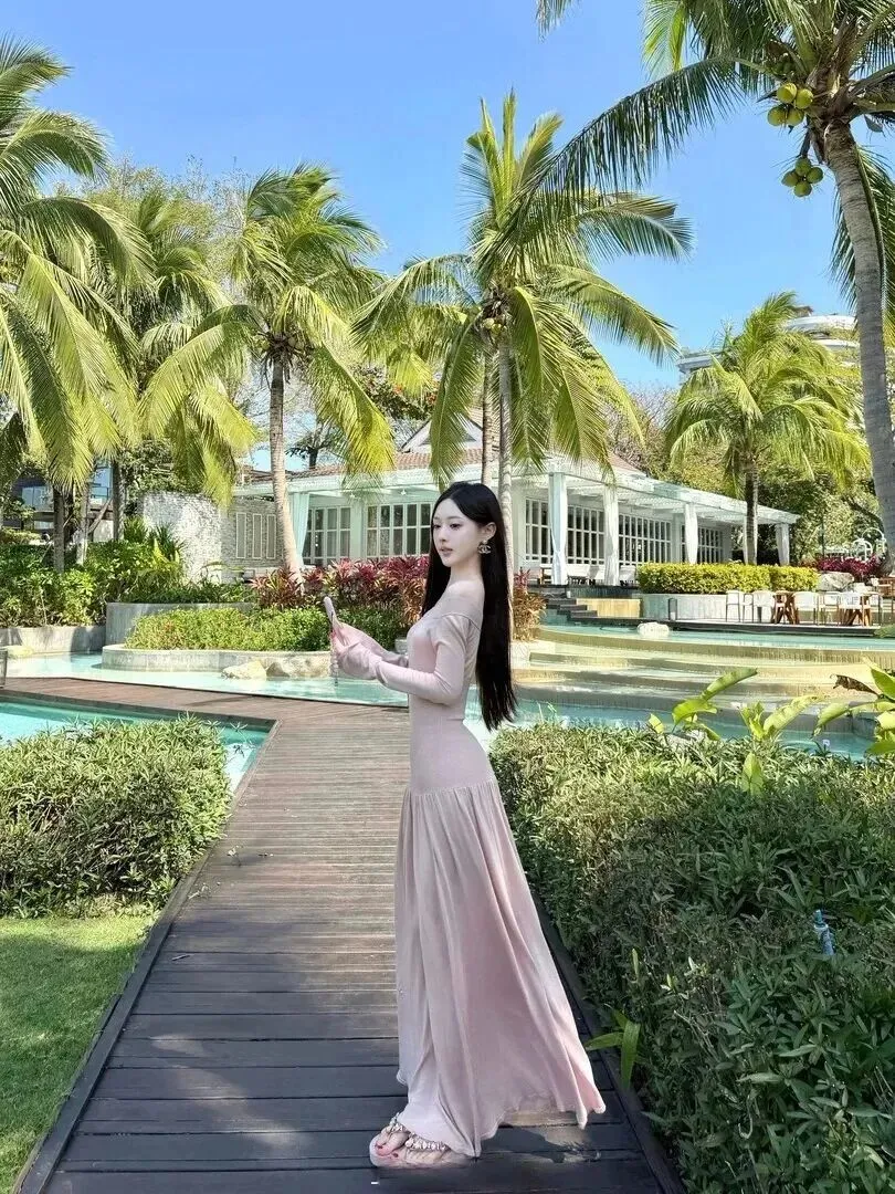 姐妹们有没有遇到过一眼就相中它的搭配呢?近几年在网上出现了这样一张女生度假照,美到令人移不开眼啊!被明亮而温暖的阳光金色光辉所笼罩,她穿在身上的这件粉色长裙就像是被罩上了轻柔的光一般。微风吹着舞裙,身上那种飘渺而文雅的气质更加明显。