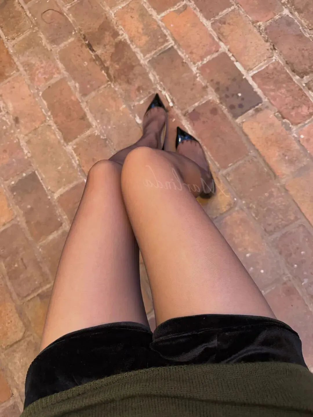 最吸引眼球的是她的那双丝袜。黑色的细软丝袜裹住了长腿,上面还有一道白色的花体字,“MarLinda”三个大字清晰可见。这点小设计一点都不张扬,但就是让人忘不掉。她走路时裙角轻轻地飘动着,丝袜隐现在外面,那对比的微妙之处太过引人注目了。