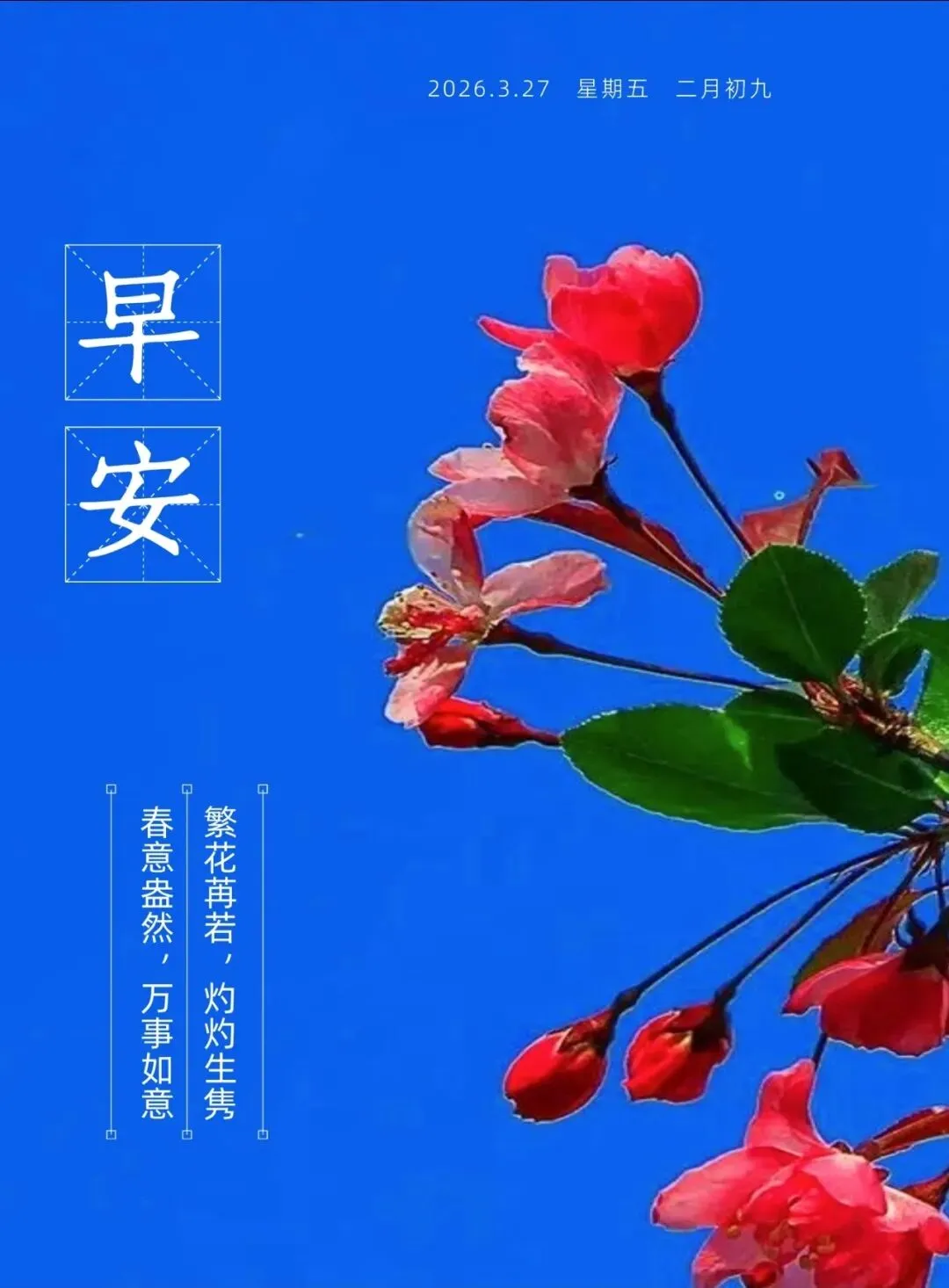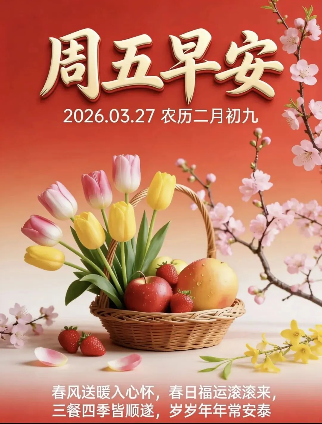 当前位置:首页>美女资讯>3月27日最新早上好图片漂亮祝福,春日早安温馨祝福语,周五早安问候祝福语,春天早上好问候祝福语.
