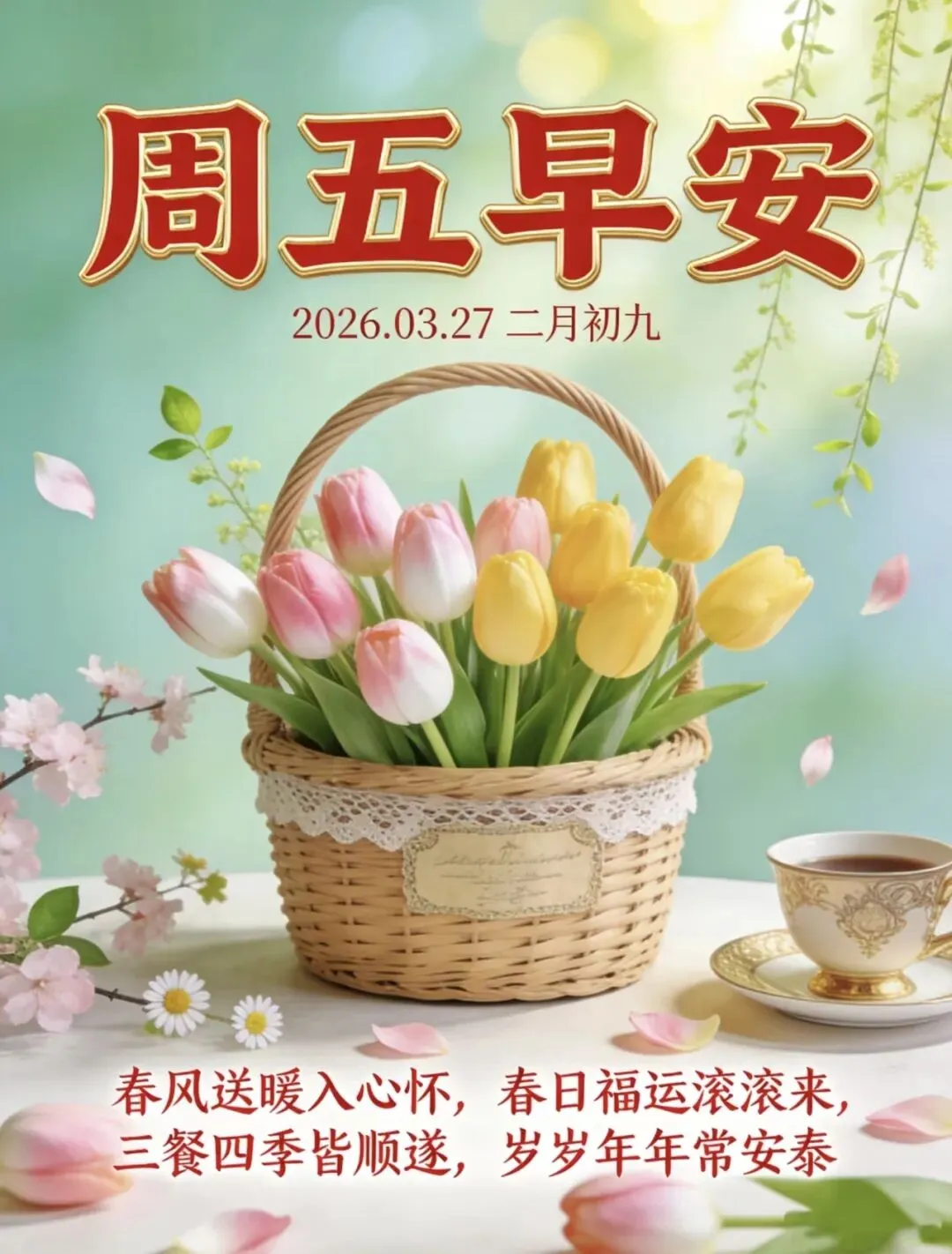 3月27日最新早上好图片漂亮祝福,春日早安温馨祝福语,周五早安问候祝福语,春天早上好问候祝福语.
