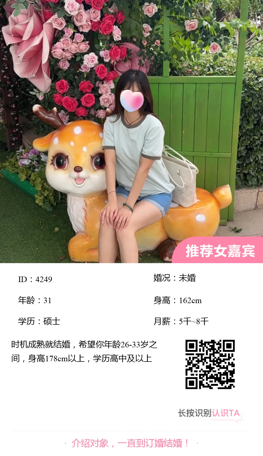 当前位置:首页>美女资讯>【女神推荐】第812期女嘉宾,95年在编老师