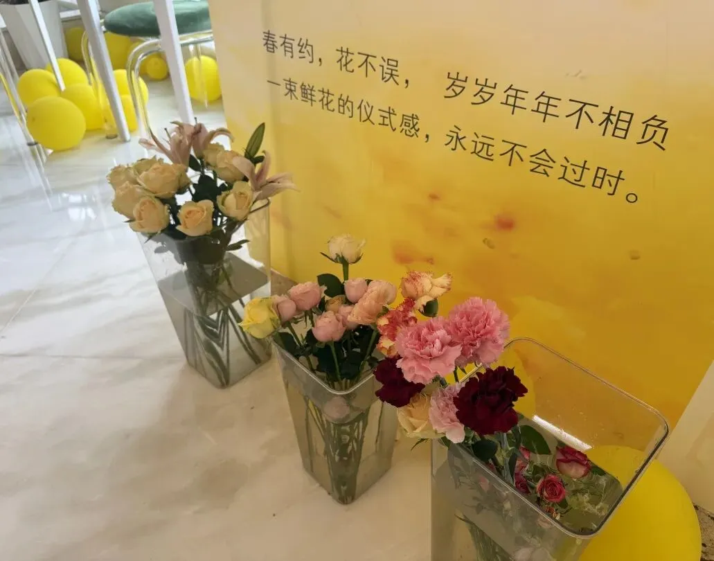 精心布置的花艺场景,鲜花开得肆意又浪漫,嫩黄底色与鲜花相映,每一个转角、每一处陈设都经过细心打理,目之所及皆是温柔。在这里,不用刻意寻觅,就能实现鲜花自由,鼻尖萦绕着淡淡花香,耳边是舒缓轻柔的音乐,疲惫在这一刻尽数消散,连呼吸都变得惬意,沉浸式感受专属于瑞莱&达瑞希的美学浪漫。