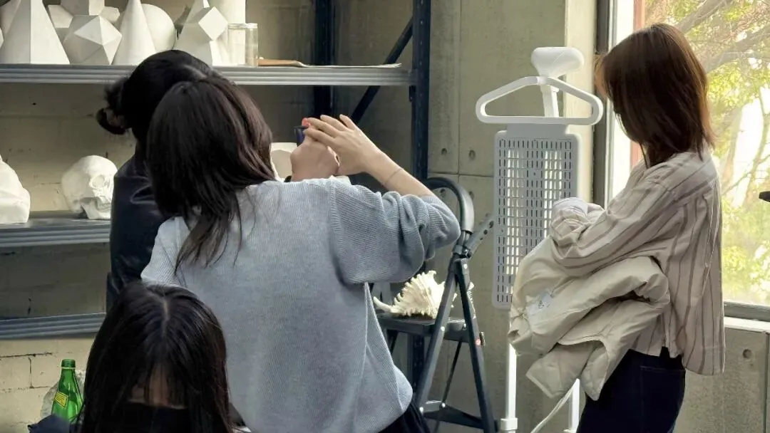 室内创作组的学员则聚焦人物、物体与空间的融合,在布置好的简约室内场景中展开拍摄,贴合日本美术大学升学作品中对“情绪表达”的核心要求。