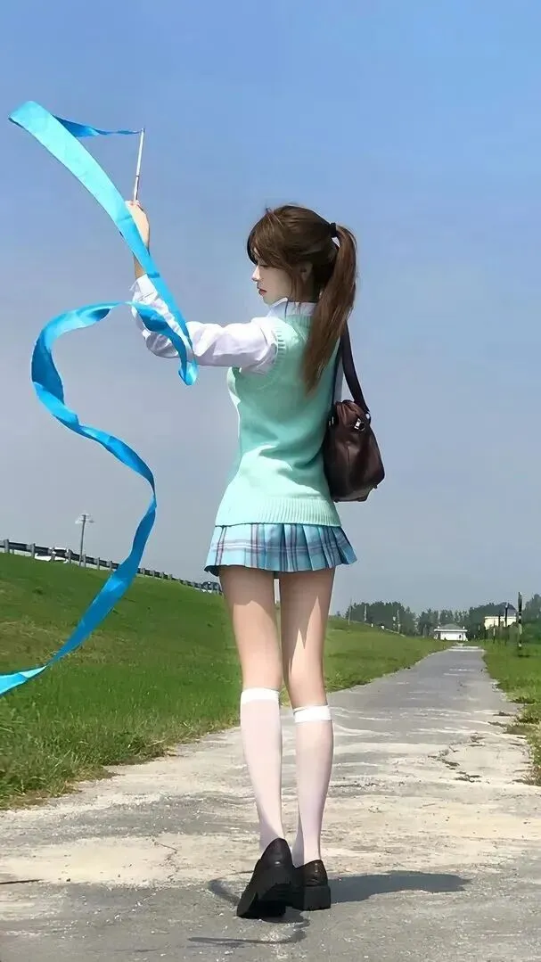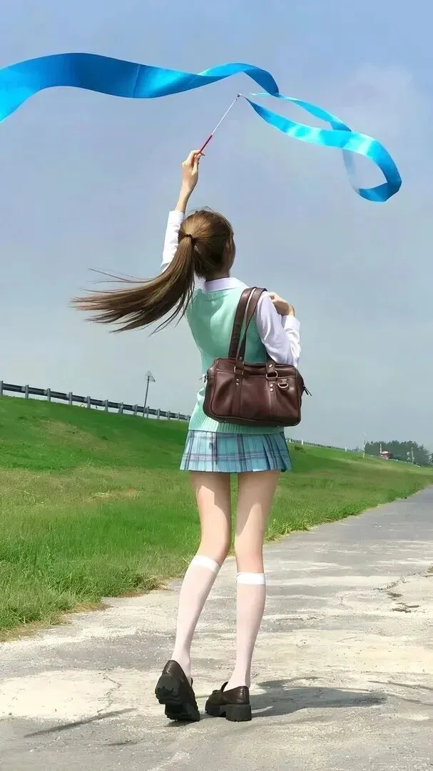 先看整体的效果。最能打动人心的就是自然不做作的气质。女孩背对镜头,高马尾微风拂动,发间蓝色发带更为突出。像隔壁班那一个总爱在走廊里哼着歌的同学那样,尽管不怎么引人注意,但是却很独特。